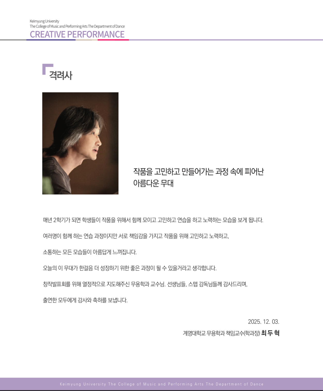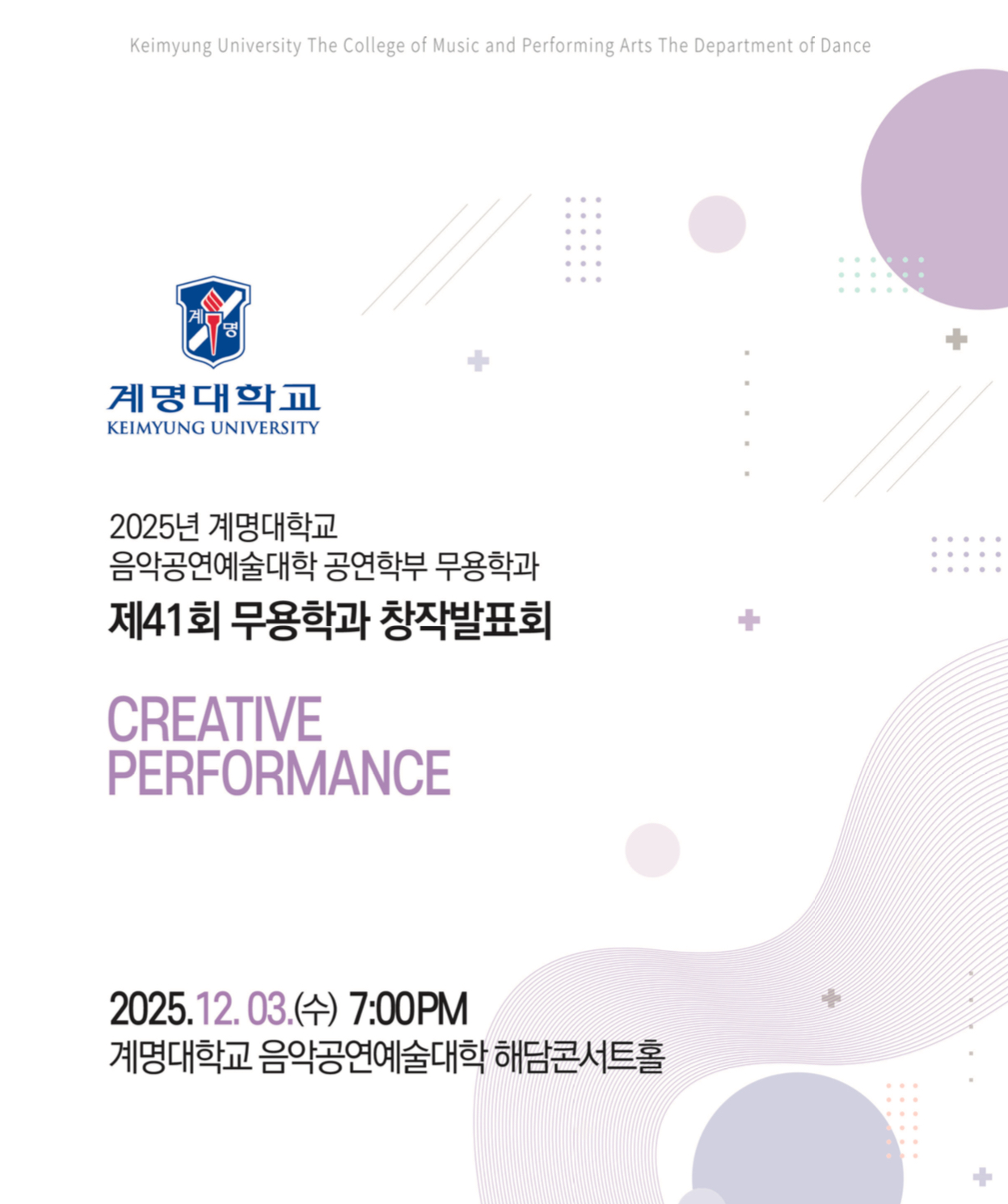 제 41회 창작발표회 공연 안내